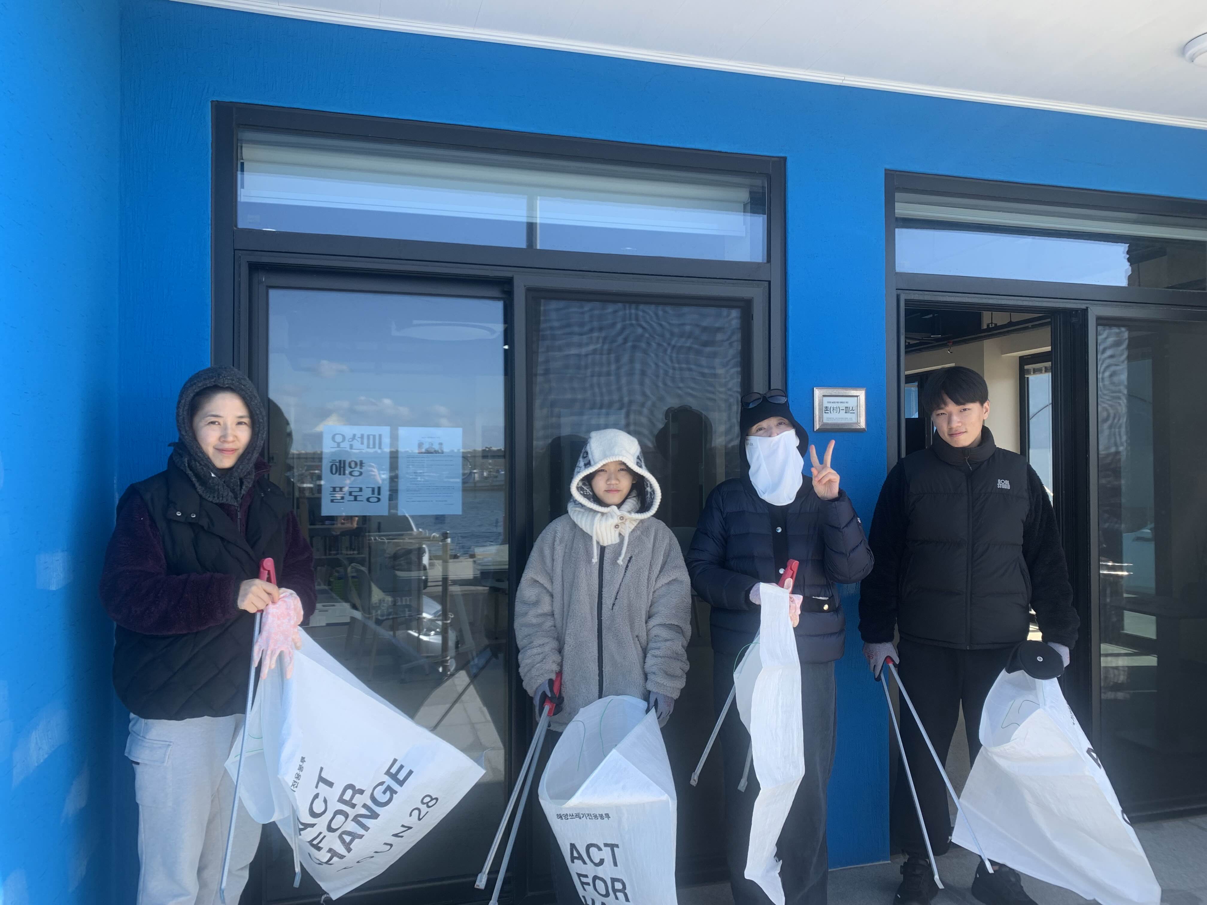 [플로깅]오후12시 - 오선미해양플로깅 (참여자: 지역학생들과 가족들 4명)
